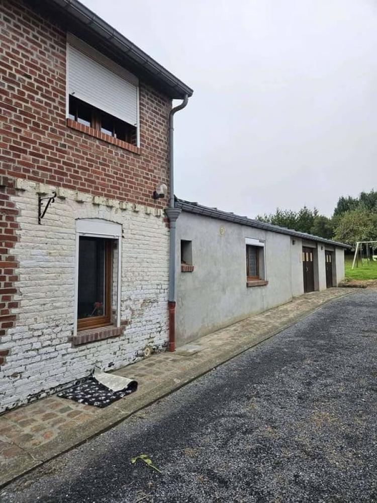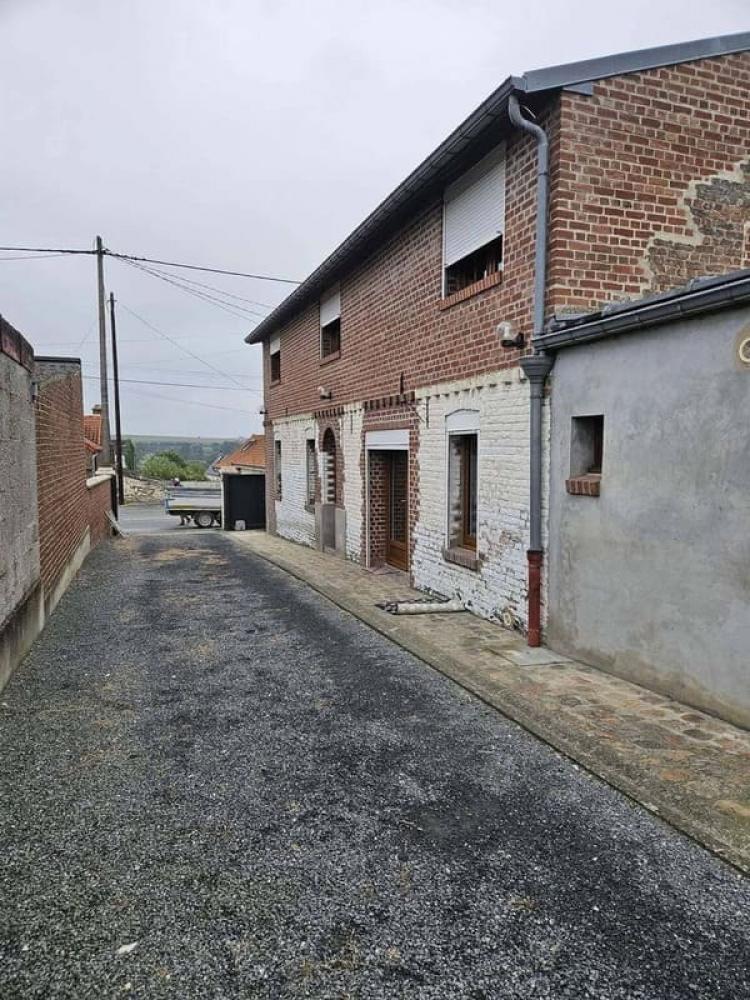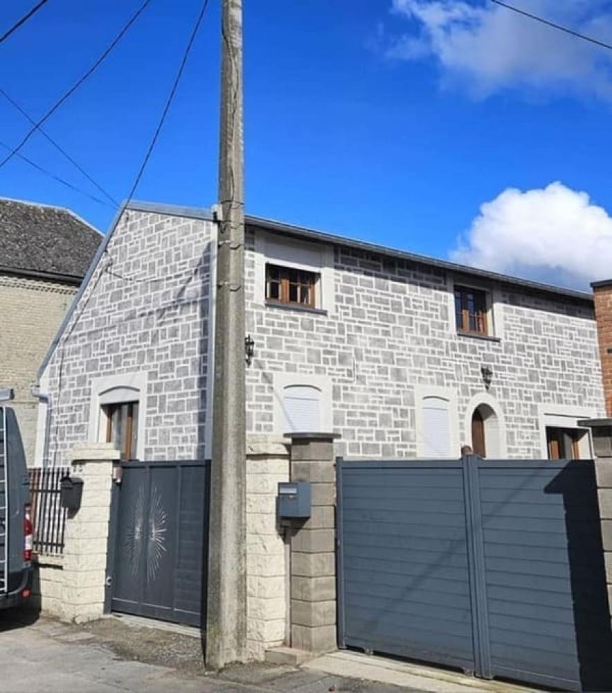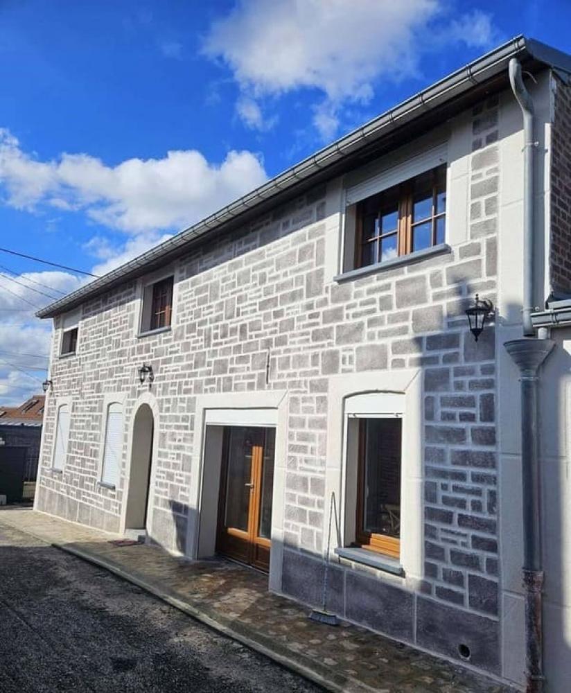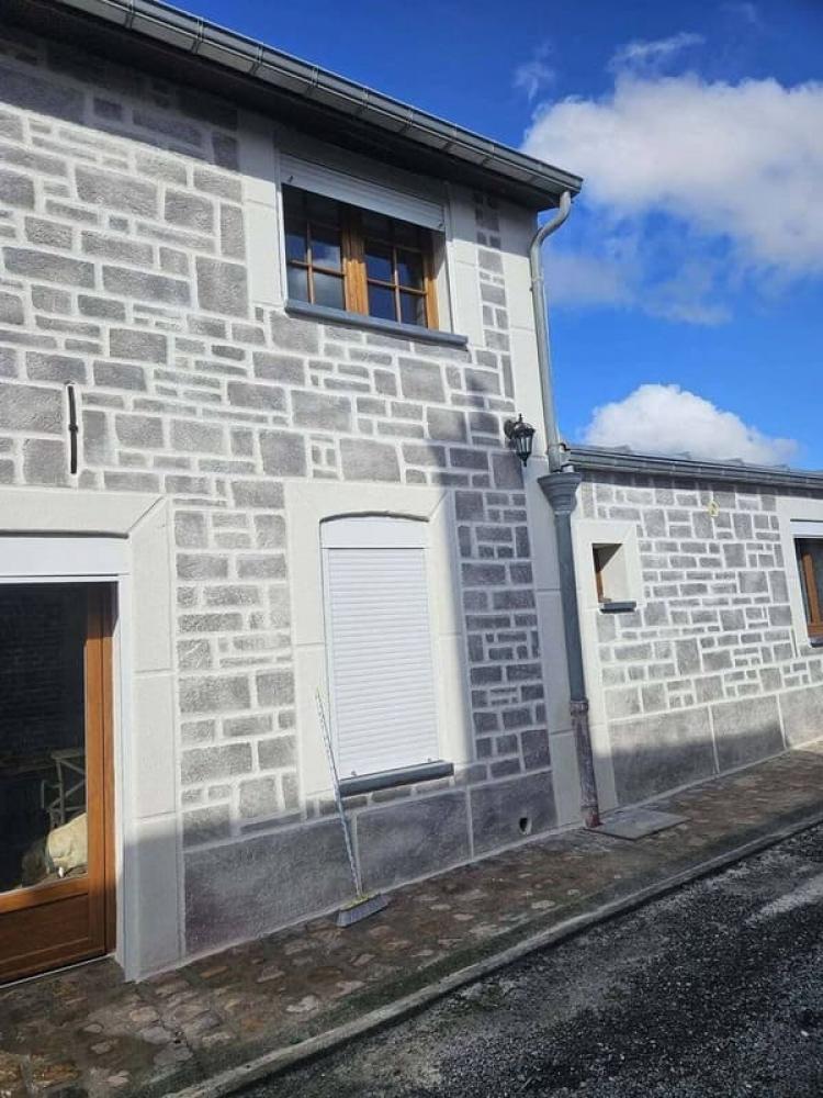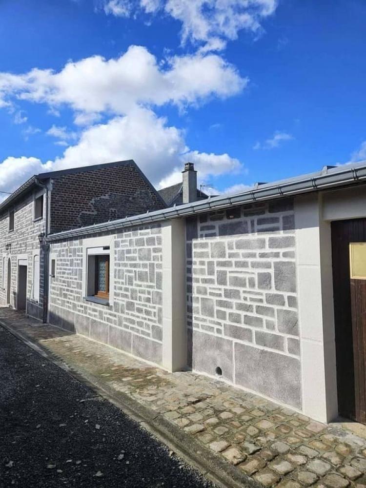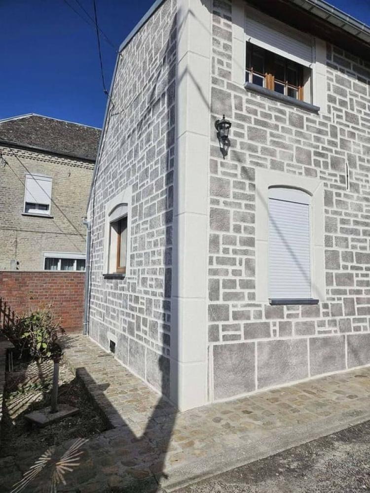 Réhabilitation d'une longère avec application d’un revêtement projeté à la chaux imitation pierre naturelle à Béthune